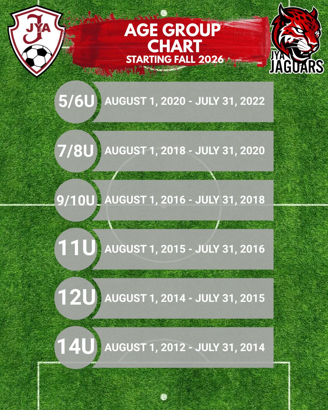 Age group change info. For Fall 2026 US Soccer is changing the age groups. The chart below shows the new eligibility.
